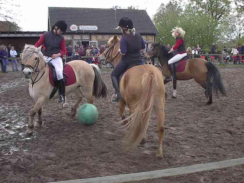oder ließen die Pferde einem entsprechend großen Fußball hinterherjagen. Zwei