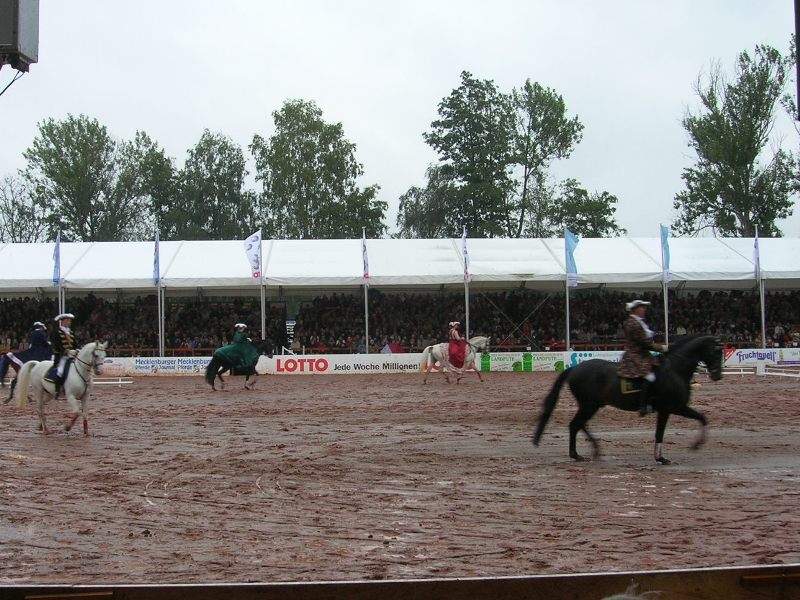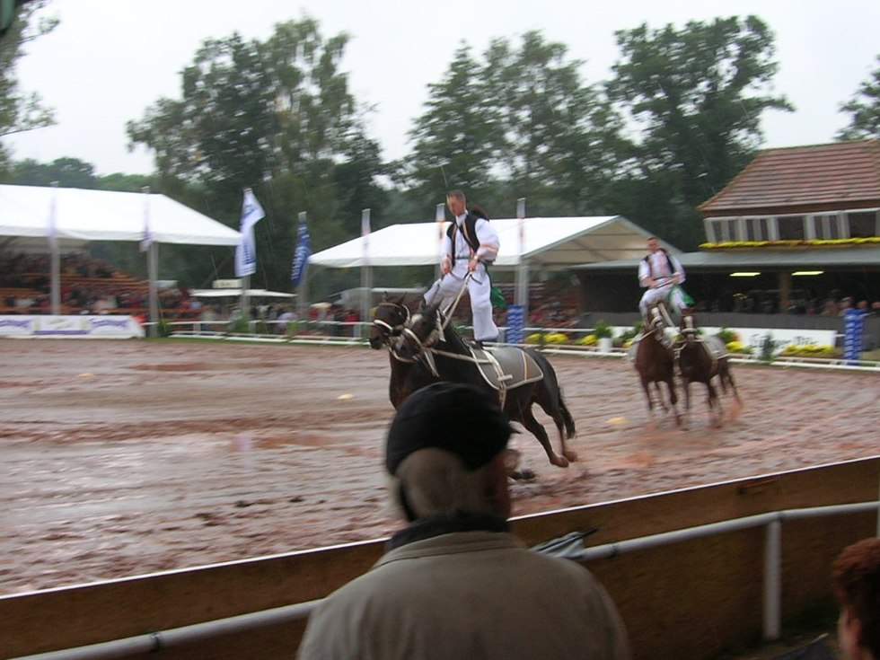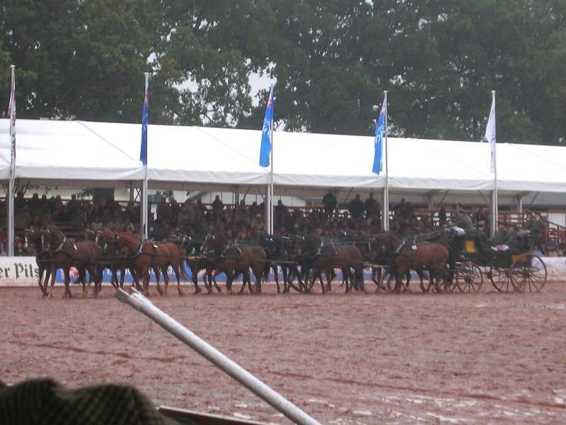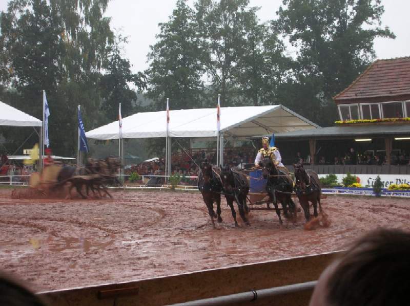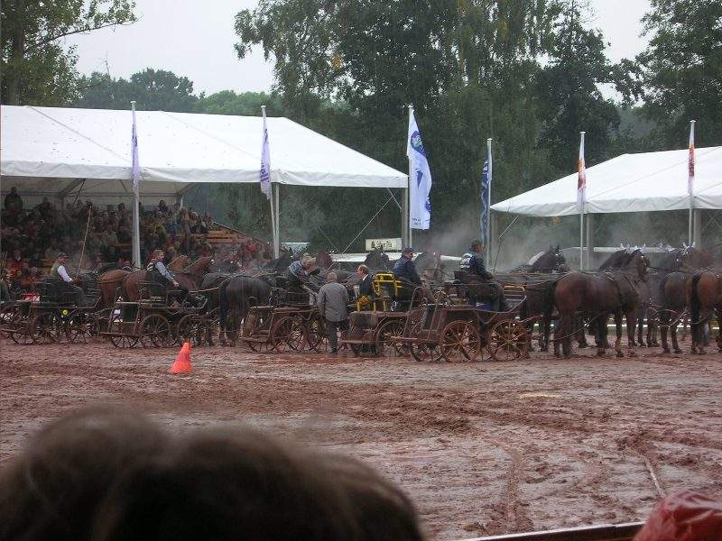 Leider war es ein Regentag. Unter den Zeltdächern saß man jedoch trocken und somit konnten wir das Programm der Redefiner Hengstparade trotzdem genießen.